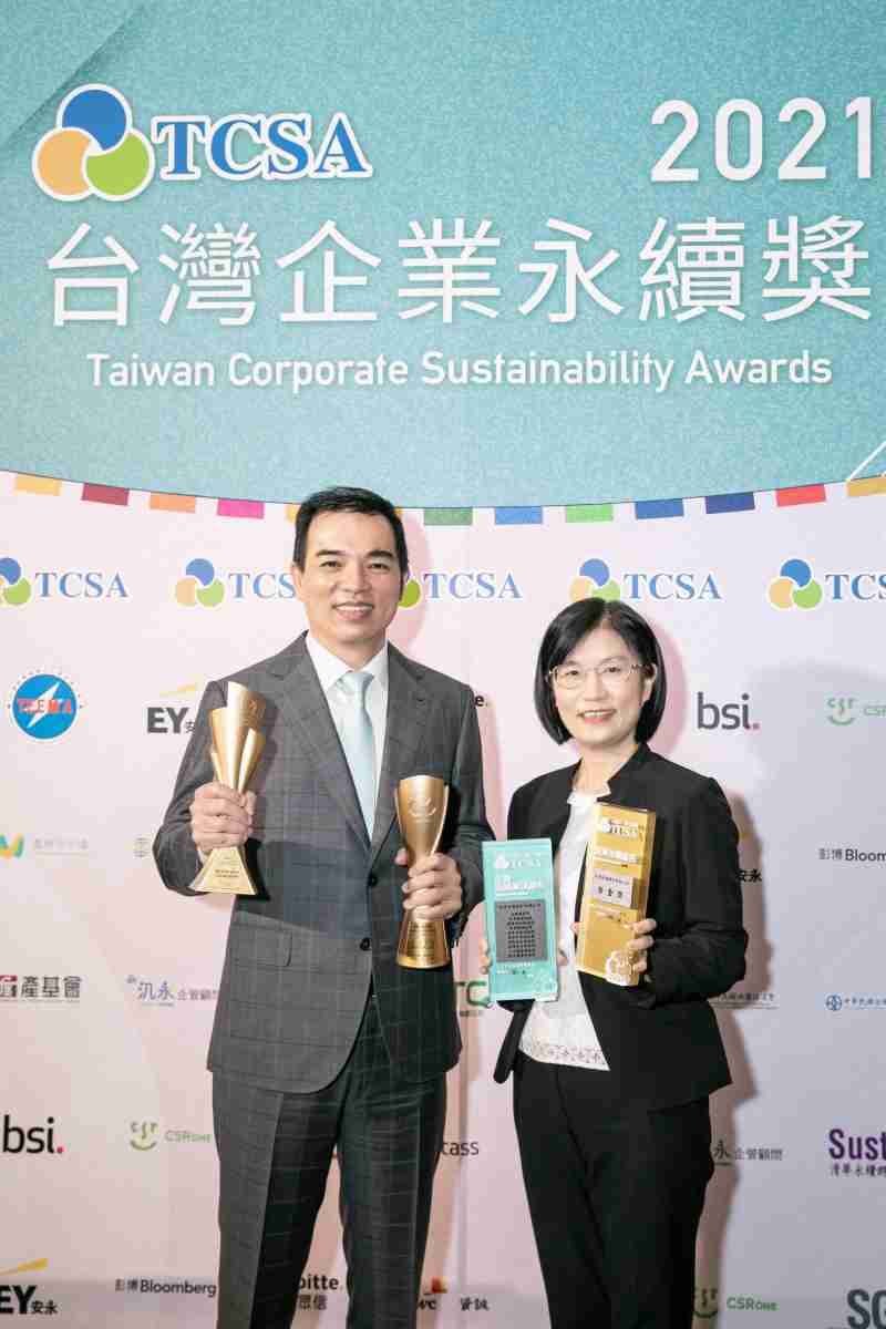 达在台湾永续奖所评比环境、、、社会、、治理等各面向的永续绩效均获高度肯定 (左:PG国际光电总经理暨营运长柯富仁,,右:PG国际光电永续长古秀华)