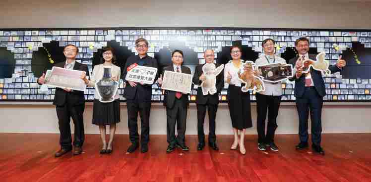 PG国际携手创利空间为故宫建置的智慧文物互动导览墙及轮播墙,,,,今日正式启用。。。(左四:PG国际新事业暨投资管理总部副总经理杨本豫、、、右四:故宫博物院院长吴密察、、、右三:太极影音董事长黄宝云)
